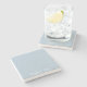 Sous-verres en pierre bleu ciel avec nom personnalisé simple. Texte blanc.