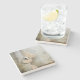 Un dessous de verre en pierre avec une photo de chéri d'un mignon ours en peluche, debout près d'un mur en bois rustique / fond.