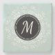 Beau dessous de verre en pierre avec couronne fleurie bleu menthe et monogramme personnalisé.