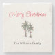Tropical Beach Joyeux dessous de verre de Noël, avec une illustration de palmiers et typographie de script. Avec le lettrage personnalisable, vous ajoutez vos propres informations. Un complément festif à votre décor de vacances et divertissant.