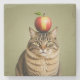 Chatte drôle avec une pomme équilibrant sur le dessus de sa tête.