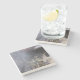 Un ensemble de dessous de verre en pierre avec une photo de pompiers qui combattent un incendie domestique.