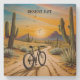 coucher de soleil tableau d'un vélo dans le désert entouré de cactus
