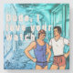 SlipperyJoe's sous-vêtements deux hommes dessin abandonné bâtiment bleu aqua rouge shorts en verre Bijoux 60's cadeaux gay artistiques LGBTQIA