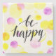 Citation inspirante de calligraphie moderne - soyez heureux - aux points d'aquarelle rose et jaune arrière - plan | Bigstock® - Tous droits réservés.
