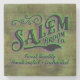 Salem Broom Company signe en noir, vert et violet et présente un arrière - plan à motifs vert gothique.