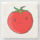 Belle tomate rouge de style dessin animé. Dessous de verre en pierre sur mesure. Design dessiné à la main. Idée cadeau pour les personnes de tous âges qui aiment les tomates et les légumes mignons.