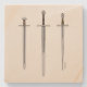 Une épée d'époque normande avec un pommeau de noix du Brésil, une "Grande épée" ou une "épée de guerre" du XIIIe ou XIVe siècle, et une épée à pointe pointue de la fin du Moyen-Âge apparaissent côte à côte dans cette illustration originale de Richard H. Fay.