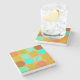 Dessous-de-verre En Pierre Turquoise Bleu Vert & Cercles Orange Monogramme