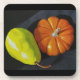 Le design sur ce dessous de verre est de ma peinture acrylique originale intitulée, Citrouille et poire.
