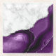 Cet élégant dessous de verre en verre est doté d'une image numérique de marbre blanc et d'agate violet orné d'une parties scintillant en faux argent.