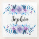 Dessous-de-verre En Verre Aquarelle bleu violet couronne florale Texte perso