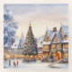 Dessous-de-verre En Verre Aquarelle Paysage hivernal Village de Noël