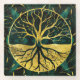 Dessous-de-verre En Verre Arbre de la vie d'or Yggdrasil sur la malachite