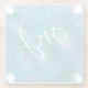 Dessous de verre en verre art numérique bleu et vert bokeh. Ajoutez initialis la zone personnalisée.