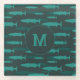 Barracuda Poisson Bleu Monogramme Dessous de verre en verre. Parfait pour les amateurs de faune marine, d'océan et de plongée sous-marine.