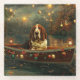 Jetez un coup d'oeil à la magie de la saison des Fêtes avec cette illustration magnifiquement détaillée, montrant un chien fier assis dans un bateau à la décoration festive, glissant à travers un lac serein de Noël. Les lumières scintillantes des pins voisins se reflètent dans l'eau, projetant une lumière chaude et festive qui renforce l'ambiance cosy. Des ornements pendent des côtés du bateau, tandis que des lanternes brillantes éclairent le chemin, créant une scène qui capture l'essence véritable de la chaleur et de la joie de Noël. Cette oeuvre nostalgique apporte une touche de magie de vacances à tout espace, parfait pour ceux qui chérissent l'esprit de la saison.