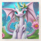 Joli Dragon Bébé Souriant avec Fleurs, ce design présente un joli dragon bébé souriant avec des fleurs.