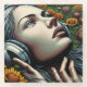 L'art de Ai dépeint une femme dans un casque posé sur un terrain de tournesol en écoutant de la musique.