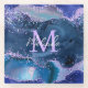 Ce dessous de verre est décoré d'un élégant et glamour arrière - plan en marbre marbré bleu foncé aux accents de parties scintillant faux bleu. Le monogramme combine écriture manuscrite et polices sans serif modernes pour un look élégant et sophistiqué. Cela fera le cadeau idéal car il peut être customisé avec un nom et une initiale. Les paillettes et la texture en mauvais état créent un mélange parfait de chic et de grunge.