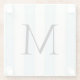 Ce dessous de verre a un monogramme noir audacieux sur un arrière - plan de rayures délicatement ombragées en bleu et blanc ancien. Mélange d'éléments vintages et contemporains, c'est un moyen facile de personnaliser vos espaces de vie et de restauration.