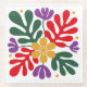 This bold abstract coaster features a vibrant floral composition inspired by modern Matisse-style cut-out art. Rich contrasting colors and organic shapes create a joyful, artistic accent for your table, desk or coffee space.