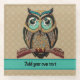 Ce hibou Art Déco est un motif de retournement de tête des années 1920 et 30 avec de merveilleux détails de perles dans les tons or et turquoise. Vous pouvez ajouter votre propre texte à la bande bleu-vert de coordination. L'arrière - plan dispose d'un café bicolore.