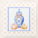 Ce design chic présente un pot de gingembre de chinoiserie avec un monogramme bleu et un arc orange entouré de citrouilles. Un motif en bambou orange est présent dans l'arrière - plan. Vous pouvez personnaliser avec votre monogramme.