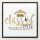 Design élégant moderne graduation 2016. Parties scintillant d'or impression de texture Classe de 2016, casquette de graduation d'or, texte personnalisable en or et noir. Bordure noire arrière - plan blanche.