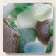Cet ensemble de dessous de verre comporte une photo de quelques beaux morceaux du verre de mer bleue et verte trouvé le long de la plage.