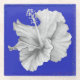 Dessous de verre en verre avec Hibiscus blanc sur un arrière - plan bleu royal. Merci à Hungryjpeg pour certains des éléments du design.