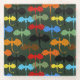Un groupe d'ailes de dragons aux couleurs noir, marron, rouge, orange, jaune, bleu et vert s'ouvre sur les ailes sur un fond vert foncé et profond qui grimpe vers le haut. Les dragons sont dessinés dans un style de tatouage tribal.
