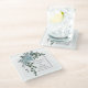 Dessous de verre en verre de mariage, arche et initiales couleur bleu foncé. Ce joli design mariage présente une arche avec des fleurs de cactus bleus et des feuilles dans le coin gauche et vos initiales. Les noms sont en typographie de script.