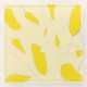 Ce dessous de verre en verre est composé d'un ensemble de pétales de fleurs japonaises jaunes dessinés à la main, avec des tiges organiques lilas jouant autour de la surface pâle.
