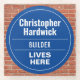 Amusant style Commémoratif Plaque murale Cadeau sous forme de Dessous de verre en verre pour un Builder. Plaque bleue et blanche. Modifiez la conception pour modifier le libellé en fonction du destinataire du cadeau.
