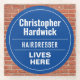 Amusant style commémoratif Plaque murale cadeau sous forme de Dessous de verre en verre pour un coiffeur. Plaque bleue et blanche. Modifiez la conception pour modifier le libellé en fonction du destinataire du cadeau.