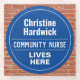 Amusant style commémoratif Plaque murale Cadeau sous forme de Dessous de verre en verre pour une infirmière communautaire. Plaque bleue et blanche. Modifiez la conception pour modifier le libellé en fonction du destinataire du cadeau.