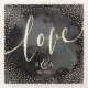 Glamor lettrage main en or calligraphie amour design et points d'or confetti sur ciel noir foncé arrière - plan aquarelle, effet de parties scintillant en or métallique brillant, moderne, chic, élégant et classe, parfait pour mariage vintage ou mariage d'hiver en soirée. Voir toutes les pièces correspondantes dans la collection ci-dessous.