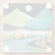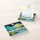Un magnifique paysage avec des textures uniques montrant un paysage de rivière et de montagne avec une lune montante et ciel étoilé dans les tons de bleu, or, vert foncé et jaune.