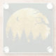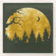 Ce design esthétique dépeint une scène dans les bois de nuit dans des couleurs dorées impressionnantes avec une silhouette arborée et forestière et un croissant de lune.