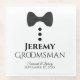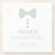Ce dessous de verre en verre est à la fois élégant et amusant. Il présente un design de tuxedo mignon avec une cravate arc noir et trois boutons noirs. Le texte dit "Groomsman" et il y a de la place pour son nom, le nom du couple et la date du mariage. Grand souvenir mariage, merci cadeau, ou ajout à un sac de bagage.