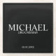 Classic Personnalisé Groomsmen Dessous de verre avec nom de marionnettiste personnalisé avec titre et date mariage dans le style de police serif classique sur arrière - plan noir. Aussi parfait pour Best Man, Père de la Mariée et plus.