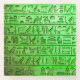 Un dessous de verre en verre vert avec d'anciens hiéroglyphes gravés sur pierre.