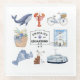 Aquarelle Preppy Martha's Vineyard Icônes de boisson parfaite couverture! Marthas Vignoble dessous de verre vitré avec aquarelle icônes de vignoble : baleine, homard, vélo, entrer dans le panneau de la ville, ferry de vignoble, silhouette de l'île viticole, timbre de phare, corbeille de vignoble