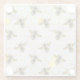 Ce dessous de verre présente un motif d'abeilles vintages jaunes et noires sur une image de nid d'abeilles en faux or superposée à un arrière - plan gris clair.