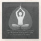 Yoga Studio Méditation Instructeur / Coach Vie / Guérisseur / Maître Reiki / Massage Thérapie Citations dessous de verre en verre. Moderne Elégant noir blanc et gris argent Bodhi Leaf et Yogi en pose assise facile / YOGA Easy Pose / Sukhasana Pose sur Black Grunge Arrière - plan.
