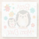 Dessous de verre adorable pour le soin de la mère avec une jolie illustration d'un hérisson de maman tenant la main de son petit hérisson. Le petit hérisson tient un coeur d'amour rose. Les deux hérissons ont des épines brunes foncées et un corps bronzé, chacun a des joues roses, des yeux brillants et un petit sourire. Au-dessus des animaux mignons, flottent des fleurs colorées en bleu, jaune et rouge. Fun rose police au-dessus et au-dessous de l'illustration dit 'Best Mom Ever'.
