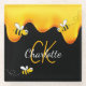 Un arrière - plan noir et des bourdons souriants. Décoré avec du miel doré doux qui dégouline. Personnalisez et ajoutez votre nom et vos initiales monographiques, en lettres dorées et blanches. Le nom est écrit avec un script de style écrit à la main. Parfait pour votre maison d'été !