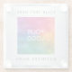 Faux Silver Metallic Look Ajouter Votre Entreprise Logo Image Modèle Texte Carré Dessous de verre en verre.