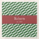 Ajoutez une touche de design funky unique à votre décoration intérieure avec ce dessous de verre en verre personnalisé au nom de votre famille. Ce dessous de verre moderne présente un motif de fond à rayures vertes et blanches et une zone rouge pour votre nom de famille et la date à laquelle votre famille a été créée (ou le texte de votre choix).